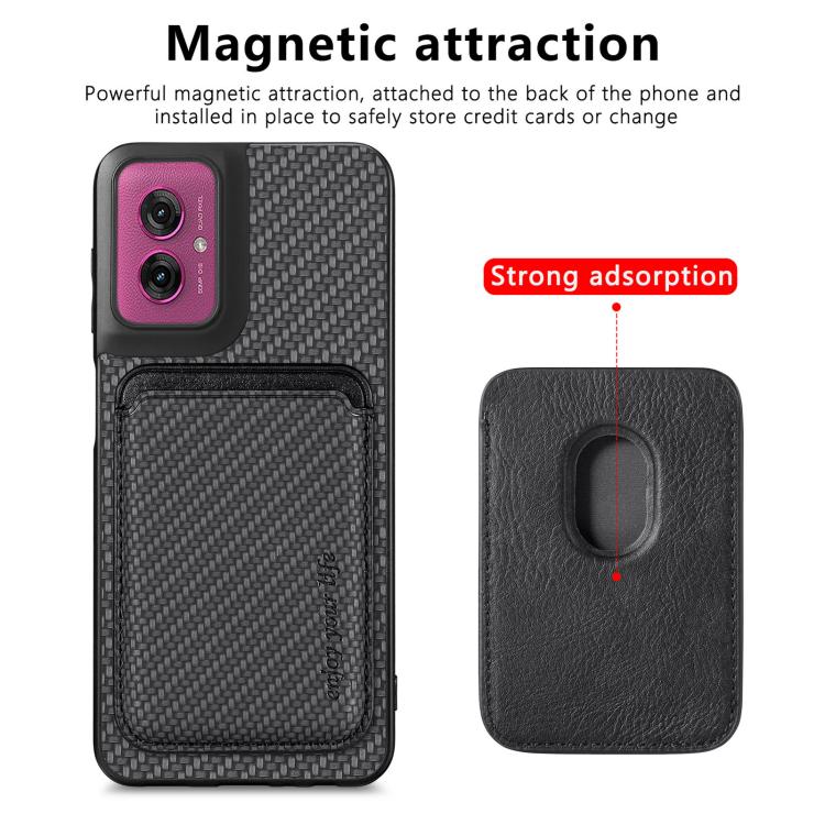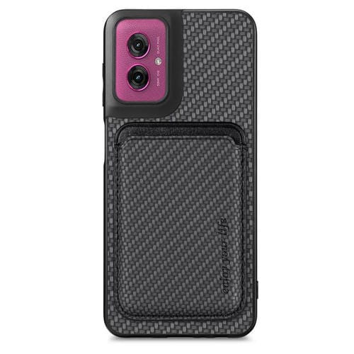 Funda para Teléfono Motorola Moto G55 con Tarjetero Cuero Fibra de Carbono y Magsafe (Negro)