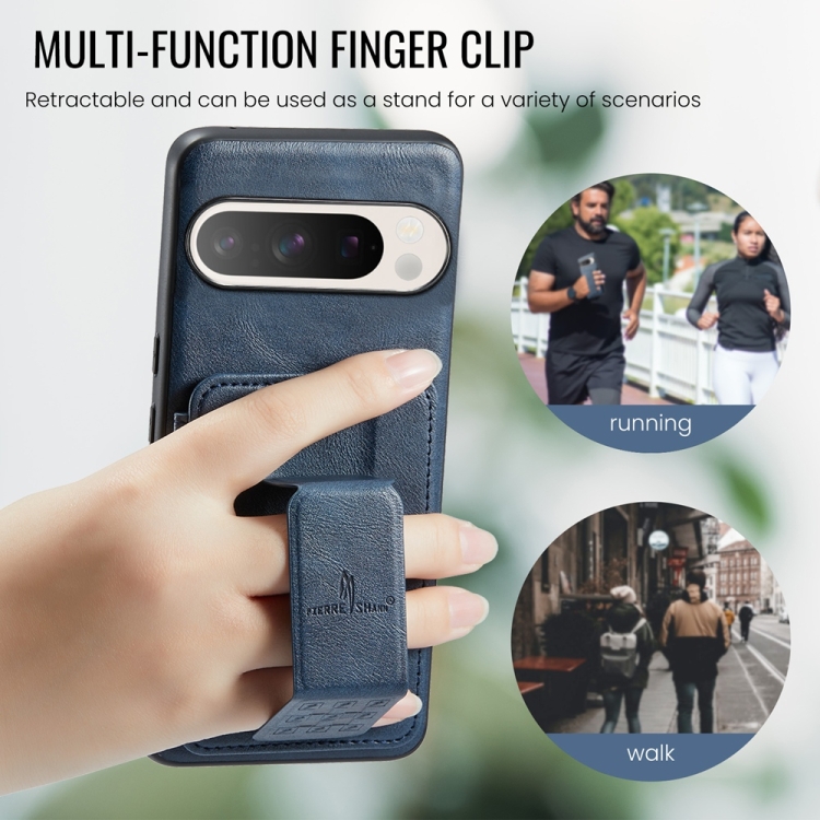 Funda para Teléfono Fierre Shann con Tarjetero Cuero de Vaca con Cera para Google Pixel 9 Pro XL (Azul)