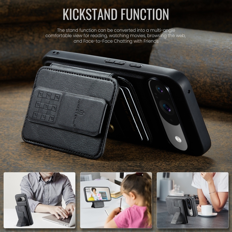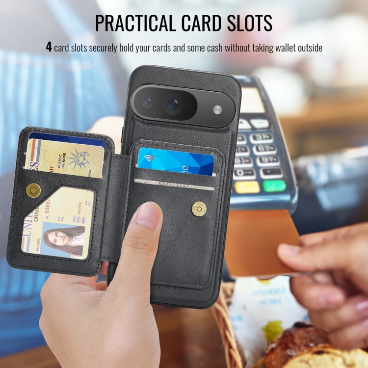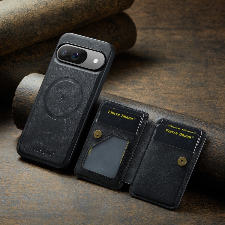 Funda para Teléfono Fierre Shann con Tarjetero Magnético y Tapa Horizontal de Piel para Google Pixel 9/9 Pro (Negro)