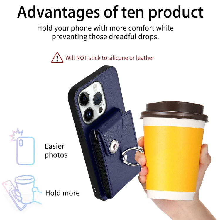 Funda para Teléfono iPhone 16 Pro con Tarjetero y Anillo (Azul)