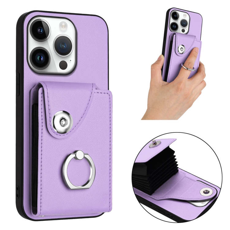 Funda para Teléfono iPhone 16 Pro con Tarjetero y Anillo (Morado)