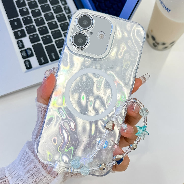 Funda para Teléfono TPU Magsafe con Textura Chapada y Película de Lente Brillante para iPhone 16 (Arrugas Blancas)