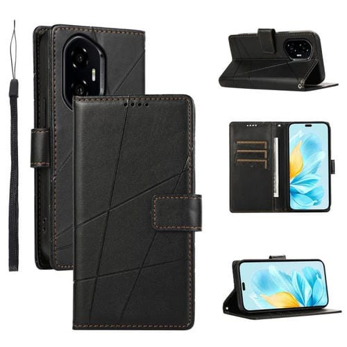 Funda para Teléfono Honor 300 Pro/300 Ultra Textura Cuero PU Líneas en Relieve (Negro)