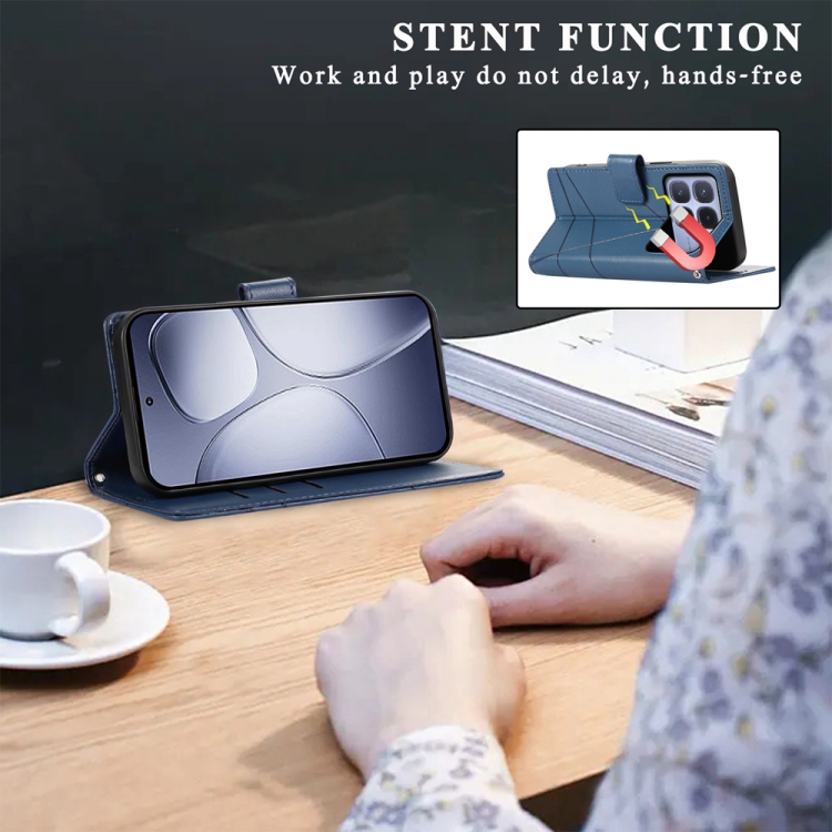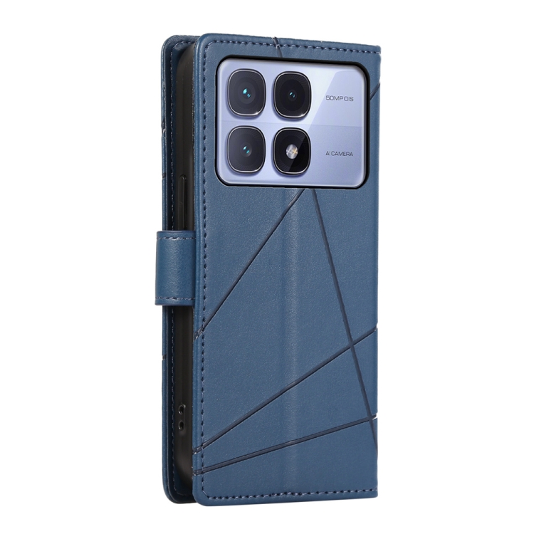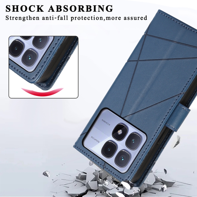 Funda para Teléfono con Textura de Cuero Genuino Pu con Líneas En Relieve para Redmi K70 Ultra (Azul)
