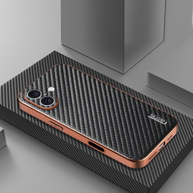 Funda para Teléfono Azns iPhone 16 Textura Fibra de Carbono Borde Galvanizado (Negra)