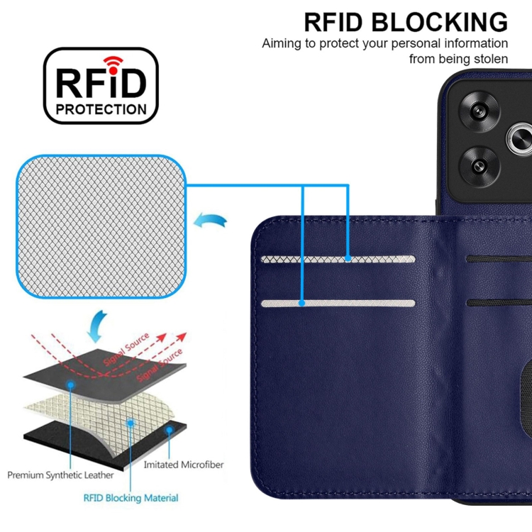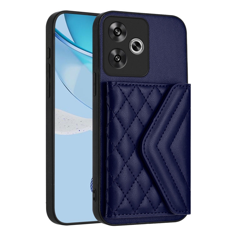 Funda para Teléfono con Textura Rombal y TaRJetero Rfid para Redmi Turbo 3 con Cordón Largo (Azul)