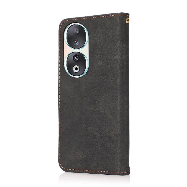 Funda para Teléfono Cuero Honor 90 con Costuras Dos Colores (Negro Marrón)