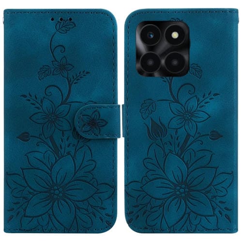Funda para Teléfono Cuero con Relieve Lily para Honor X6A (Azul Oscuro)
