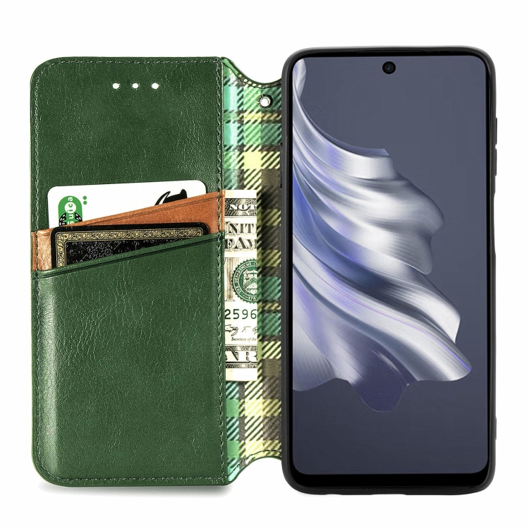 Funda para Teléfono Cuero Magnético Fortecno Spark 20 Pro Cubic Grid (Verde)