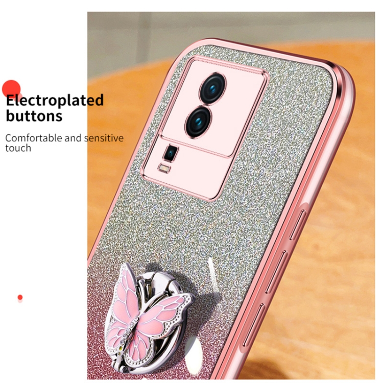 Funda para Teléfono de TPU con Soporte y Diseño de Mariposa con Purpurina Degradada para Vivo Iqoo Neo7 (Morado)
