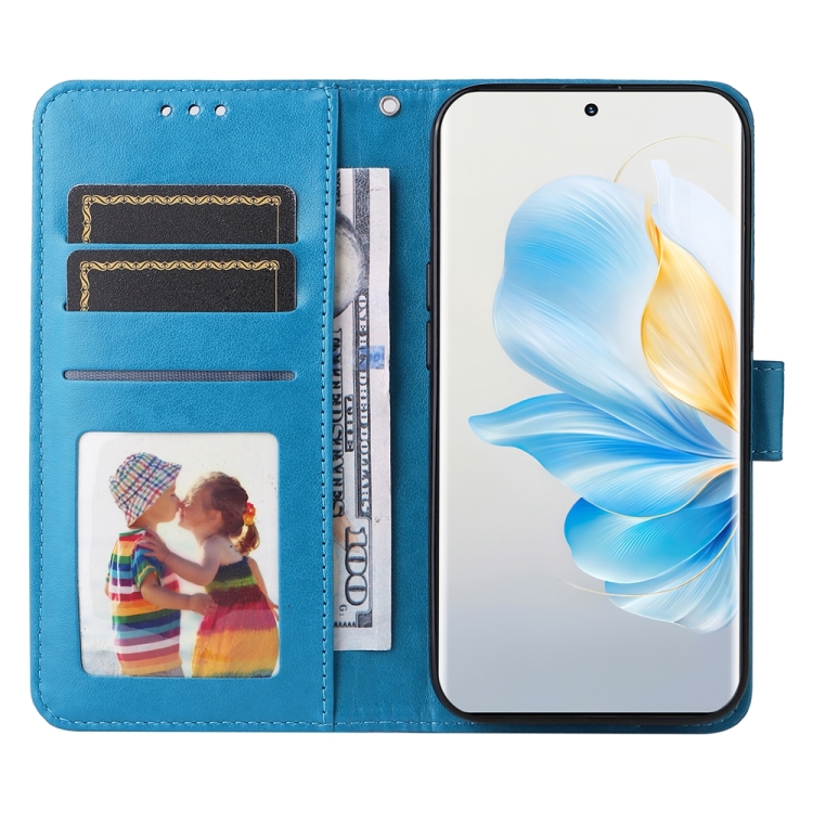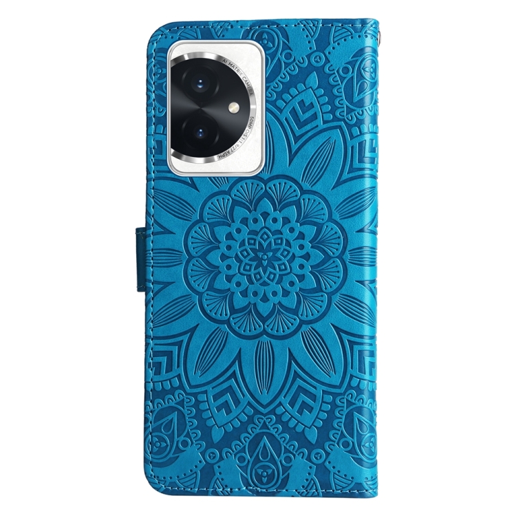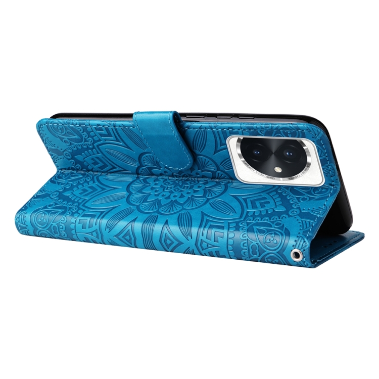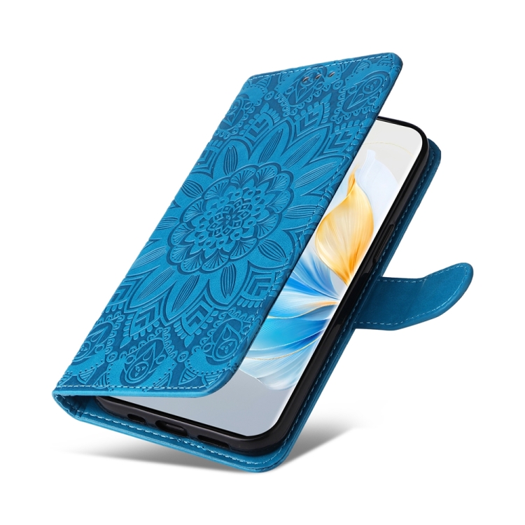 Funda para Teléfono Honor 100 de Cuero con Girasol en Relieve (Azul)