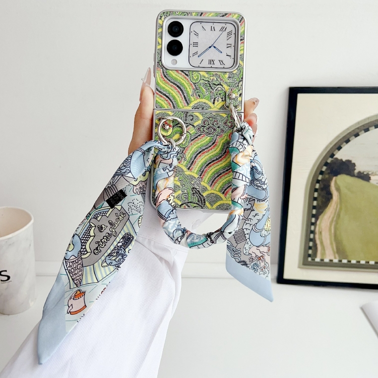 Funda para Teléfono Huawei Nova Flip con Bordado Nubes Cobertura Total Bufanda/Pulsera (Verde)