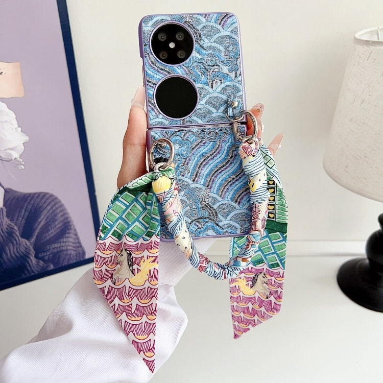 Funda para Teléfono Huawei Pocket 2 con Bordado Nubes Propicias y Cobertura Total (Azul)