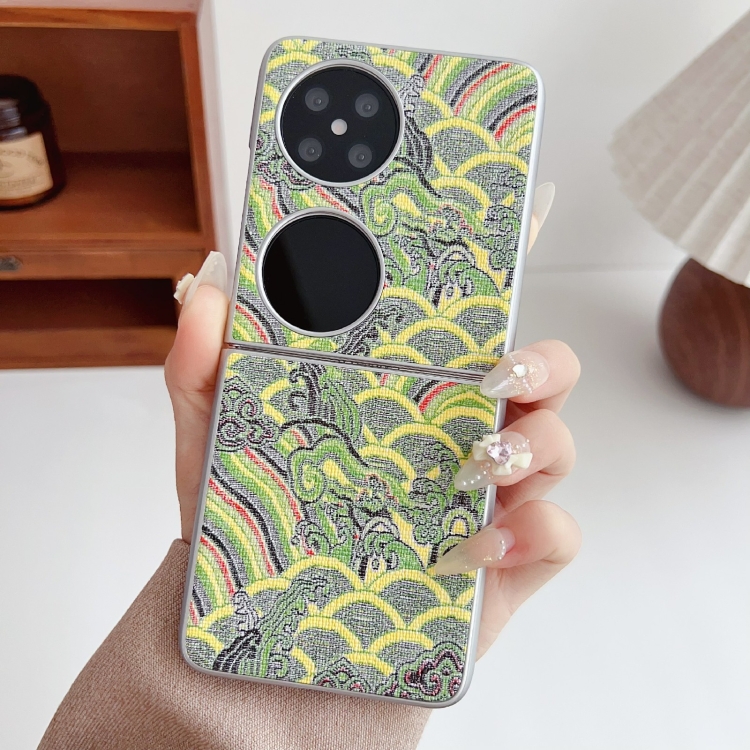Funda para Teléfono Huawei Pocket 2 con Bordado de Nubes y Cobertura Total (Verde)