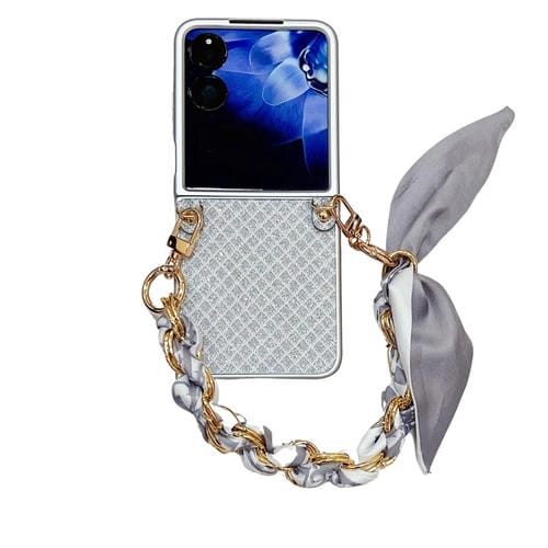 Funda para Teléfono Xiaomi Mix Flip con Rombos y Diamantes Brillantes para PC con Pulsera de Seda Tipo Bufanda (Plateada)