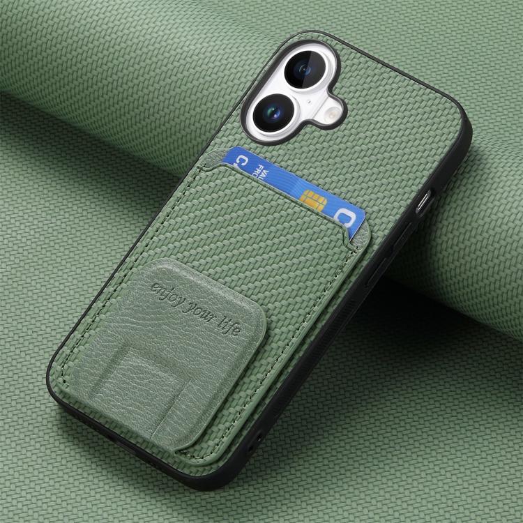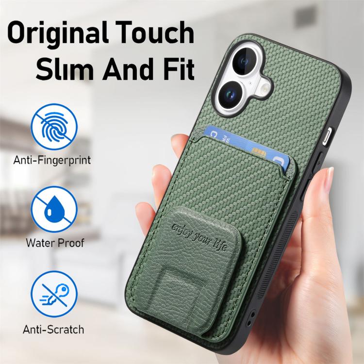 Funda plegable con soporte para tarjetas de fibra de carbono para iPhone 17 (verde)