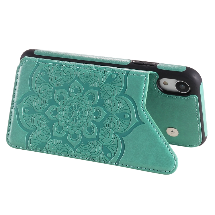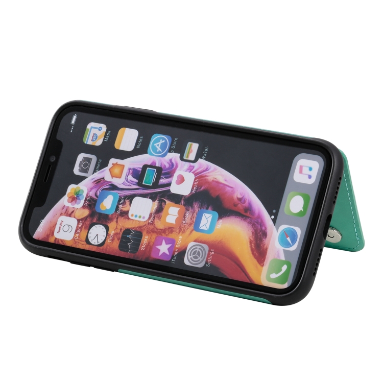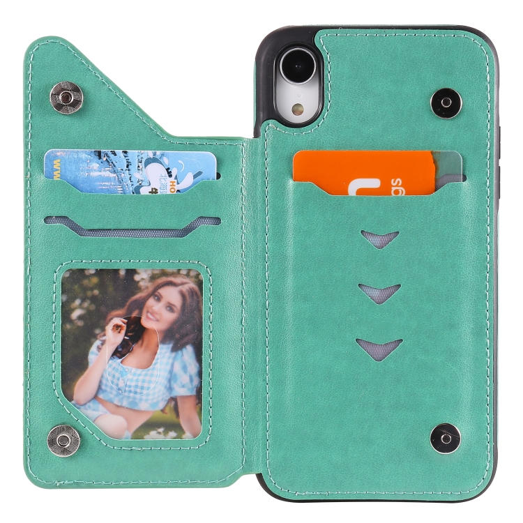 Funda Protectora para iPhone Xr con Soporte, Ranuras para Tarjetas y Marco de Fotos (Verde)