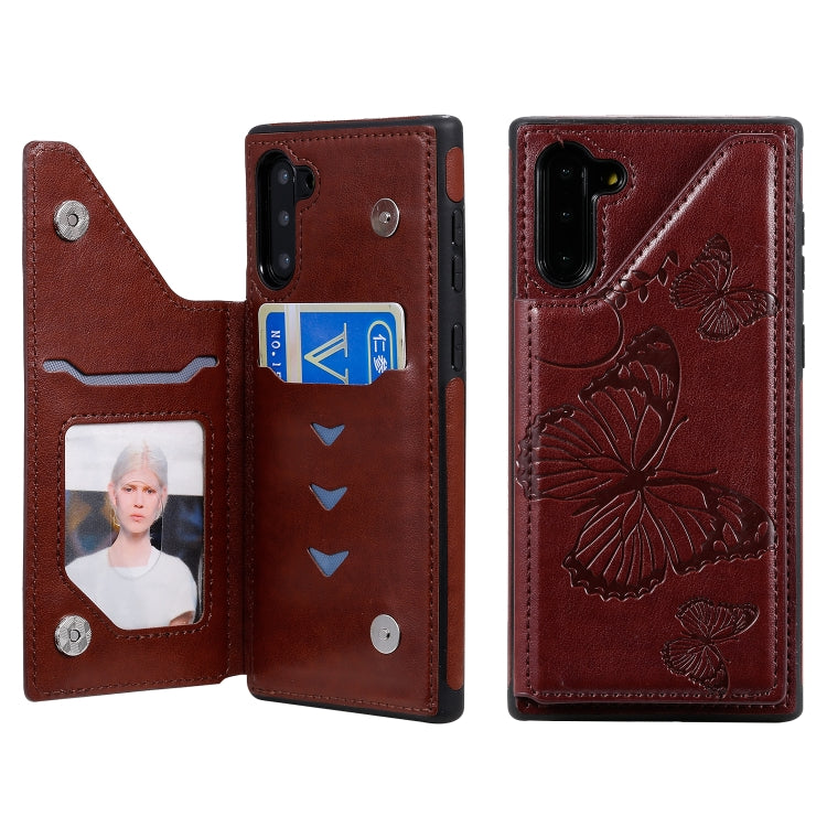 Funda Protectora Galaxy Note10 Estampado Mariposa Soporte Tarjetas Marco Fotos (Marrón)