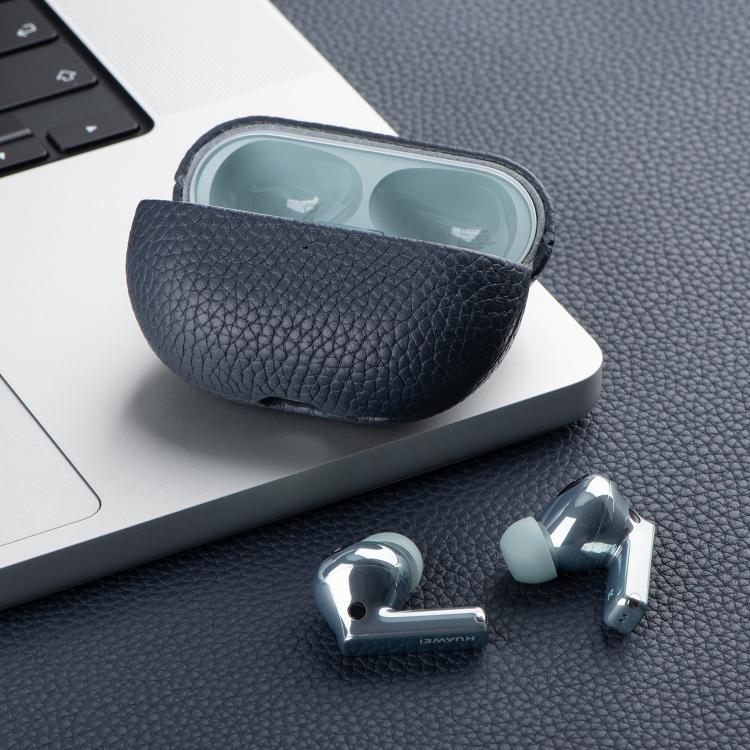 Funda protectora de cuero genuino con estampado de lichi para auriculares Bluetooth Huawei FreeBuds Pro 4 (azul oscuro)