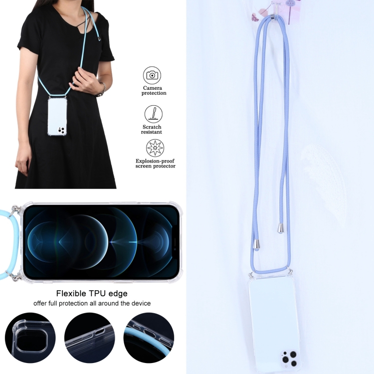 Funda Protectora TPU para iPhone 13 Pro con Cordón a Prueba de Golpes (Gris Azul)
