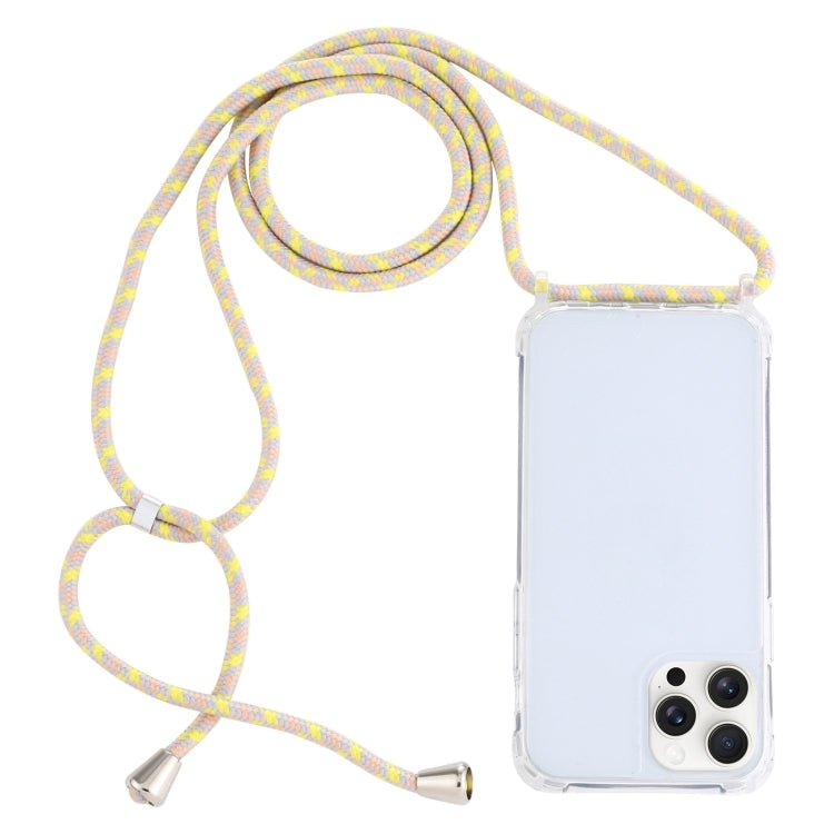 Funda Protectora para Teléfono iPhone 16 Pro Max Airbag Acrílico Transparente con Cordón (Amarillo, Rosa y Gris)
