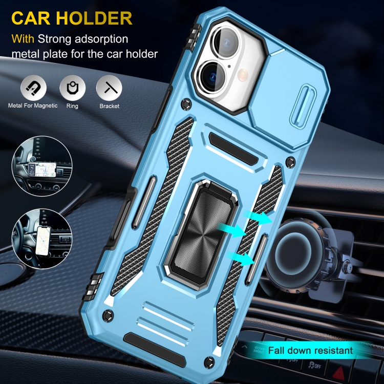Funda Protectora para Teléfono TPU PC iPhone 16 Plus Protección Cámara (Azul Claro)