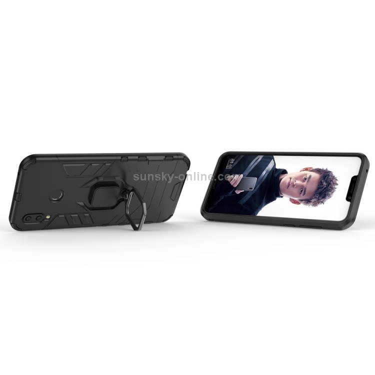 Funda Protectora PC + TPU para Huawei Honor Play con Soporte Anillo Magnético (Negro)