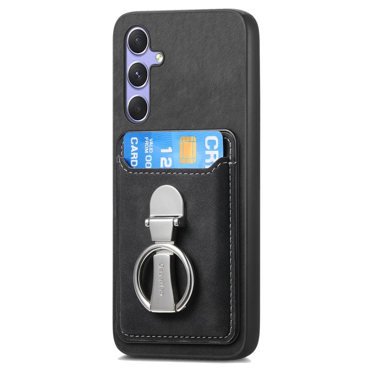 Funda retro plegable con anillo y tarjetero MagSafe para Samsung Galaxy A26 5G (negra)