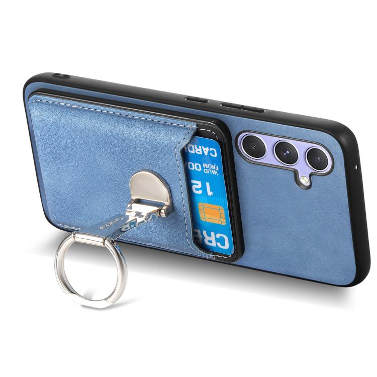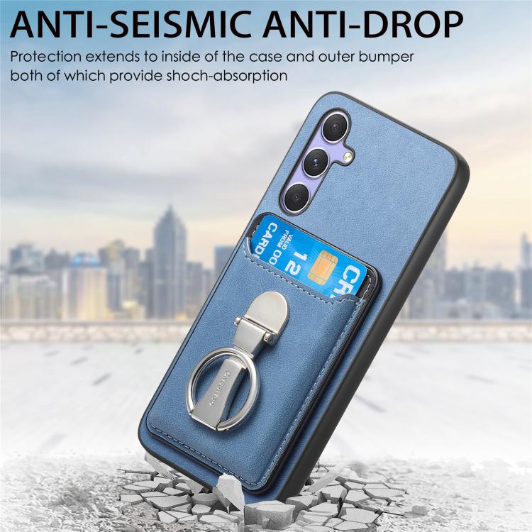 Funda retro plegable con anillo y tarjetero MagSafe para Samsung Galaxy A55 5G (azul)