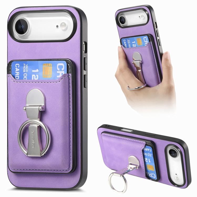 Funda retro plegable con anillo y tarjetero para iPhone Air, MagSafe (morado)