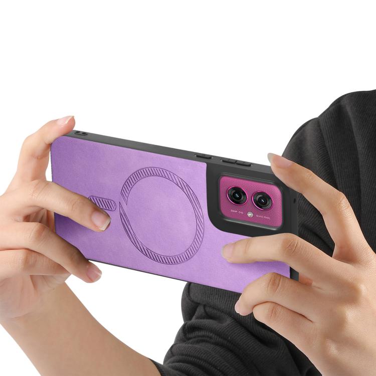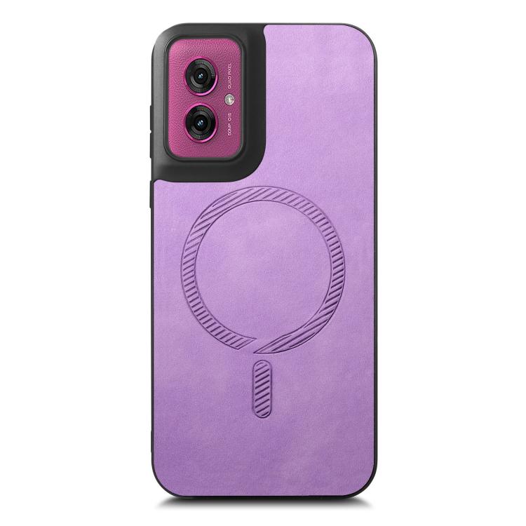 Funda Trasera Magnética PU para Motorola Moto G55 Retro Magsafe (Morado)