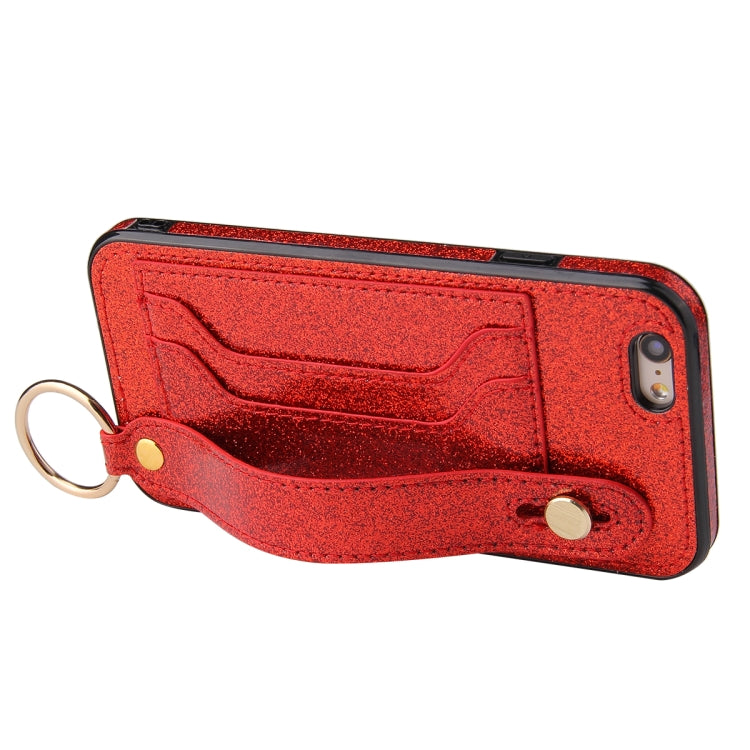 Funda Protectora Glitter Powder Pu + TPU para iPhone 6 / 6S con Soporte, Ranuras y Correa (Rojo)