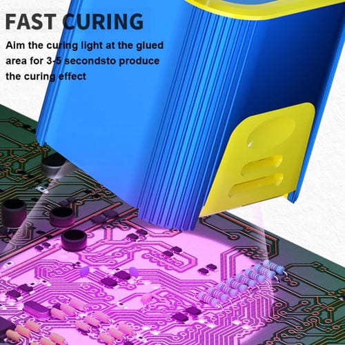 Es compatible con pegamento UV, pegamento Óptico, aceite fotosensible, resinas y tintas que requieren curado ultravioleta.