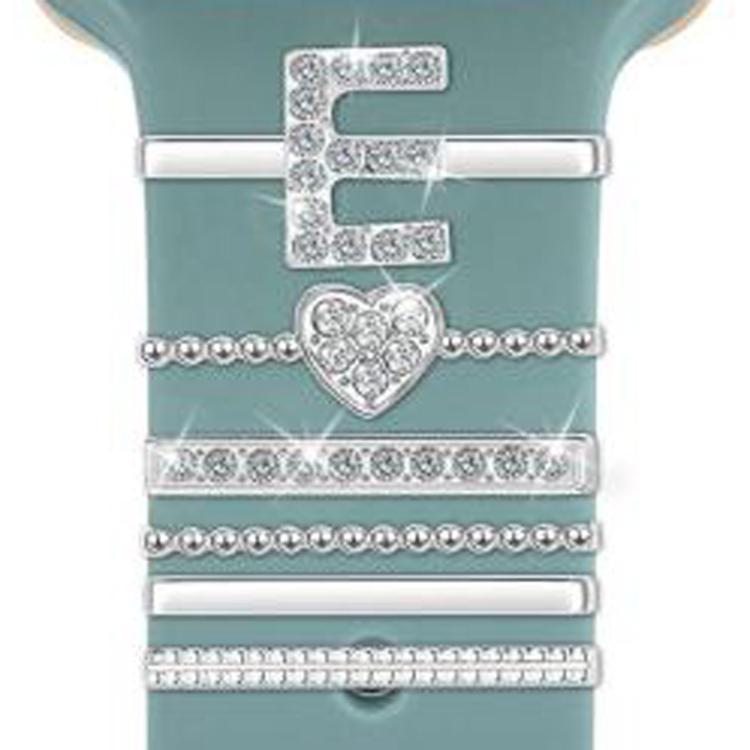 Juego de 6 correas de silicona universales para reloj inteligente, accesorios de metal decorativos, tamaño E (plata)