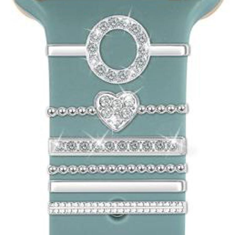 Juego de 6 correas de silicona universales para reloj inteligente, accesorios de metal decorativos, tamaño O (plata)