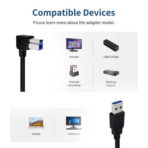 Cable adaptador USB 3.0 a Macho a USB 3.0 B Macho Junsunmay 0,5 m para estación de acoplamiento, discos duros externos, escáner e impresora (Derecha)