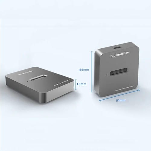 - Soporta Discos M.2 SATA y NVMe, capacidad máxima 2TB, interfaz USB 3.1 Tipo C, velocidad de transmisión de 10 Gbps, dimensiones 6.6 x 5.1 x 1.3 cm, peso 140 gramos