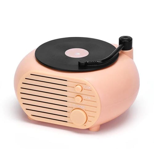 Mini Reproductor De Discos Retro Altavoz Inalámbrico Bluetooth Escritorio Tarjeta Multifuncional (Rosa y Negro)