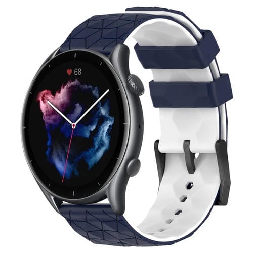Banda de Reloj Amazfit GTR 3 22mm Silicona Textura de Fútbol Dos Colores (Azul Medianoche + Blanco)