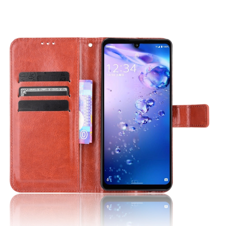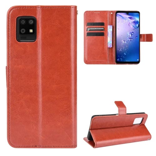 Funda de Cuero para Aquos Zero6 Crazy Horse Texture con Soporte, Ranuras y Cordón (Marrón)