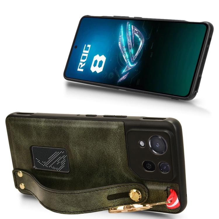 Funda Trasera de Cuero para Asus Rog Phone 8 con Pulsera (Verde)