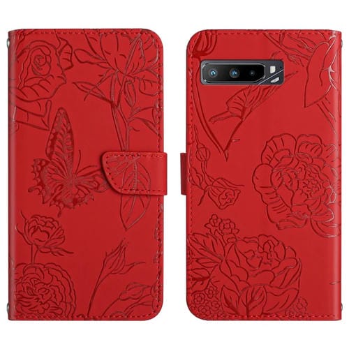 Funda de Cuero en Relieve para Asus Rog Teléfono 3 Zs661Ks con Diseño Mariposa (Rojo)