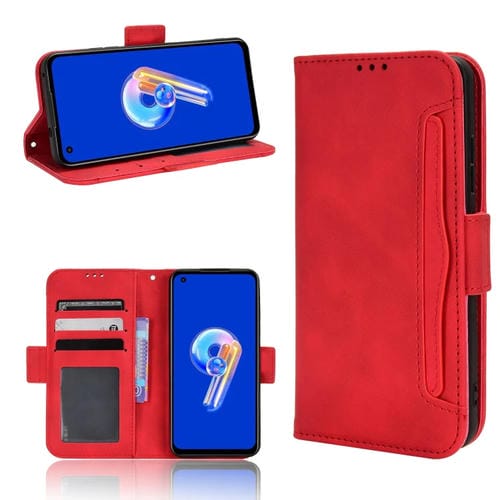 Funda de Cuero para Asus Zenfone 10 y 9 con Ranuras para Tarjetas y Textura Becerro (Rojo)