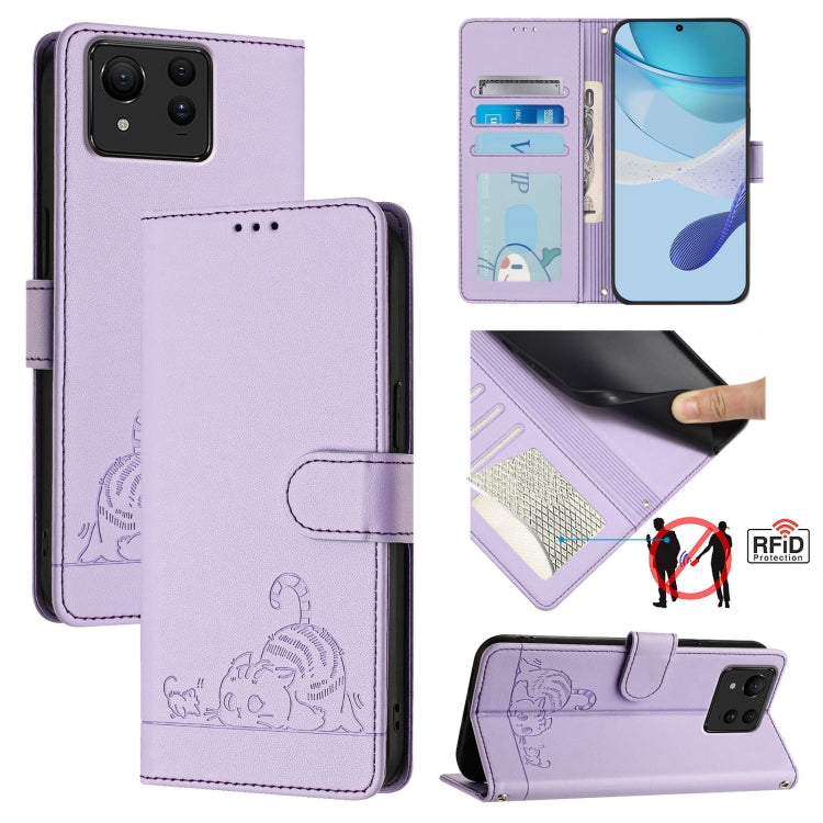 Estuche para Asus Zenfone 11 Ultra de Cuero RFID con Patrón en Relieve y Cordón (Púrpura)
