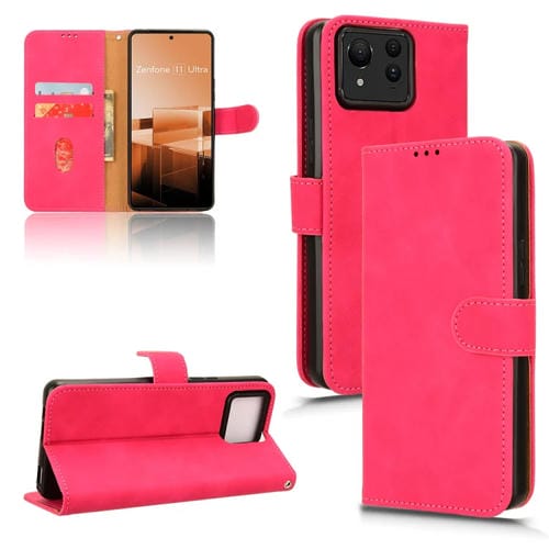 Funda de Cuero para Asus Zenfone 11 Ultra con Tapa Magnética Skin Feel (Rojo Rosa)