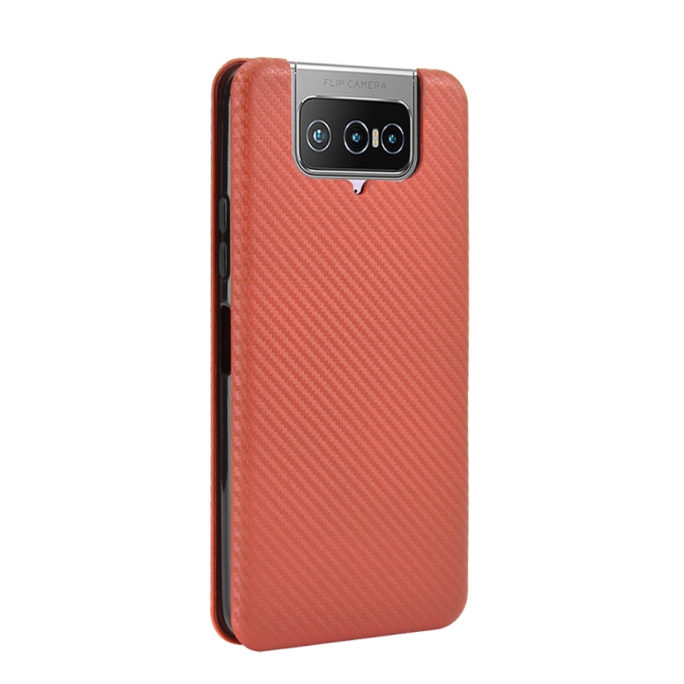 Funda Flip Horizontal Asus Zenfone 7 Zs670Ks Pro Zs671Ks Fibra de Carbono TPU PC PU con Ranura (Marrón)