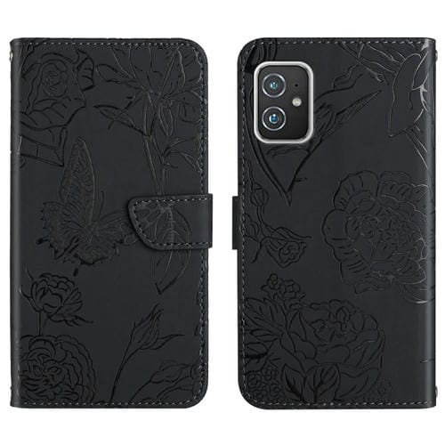 Funda de Cuero en Relieve Peonía para Asus Zenfone 8 Zs590Ks (Negro)