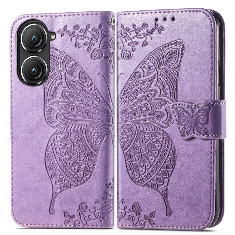 Estuche para Asus Zenfone 9 Butterfly Love Flower en Cuero en Relieve (Lavanda)
