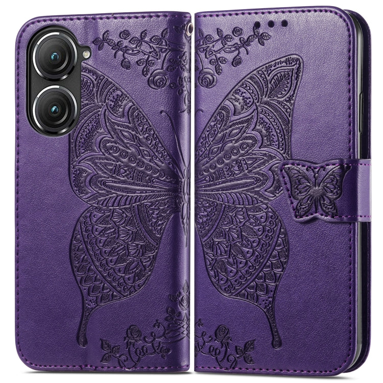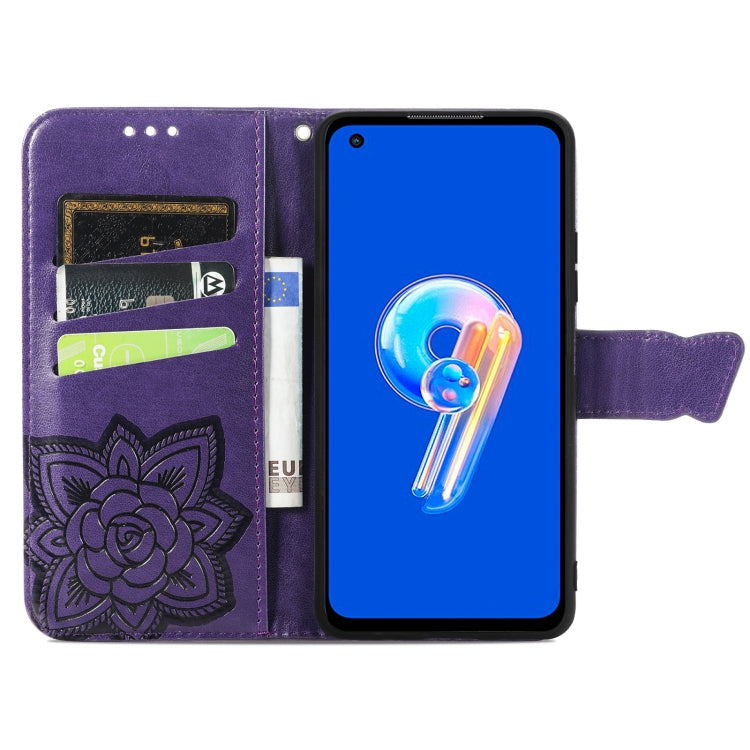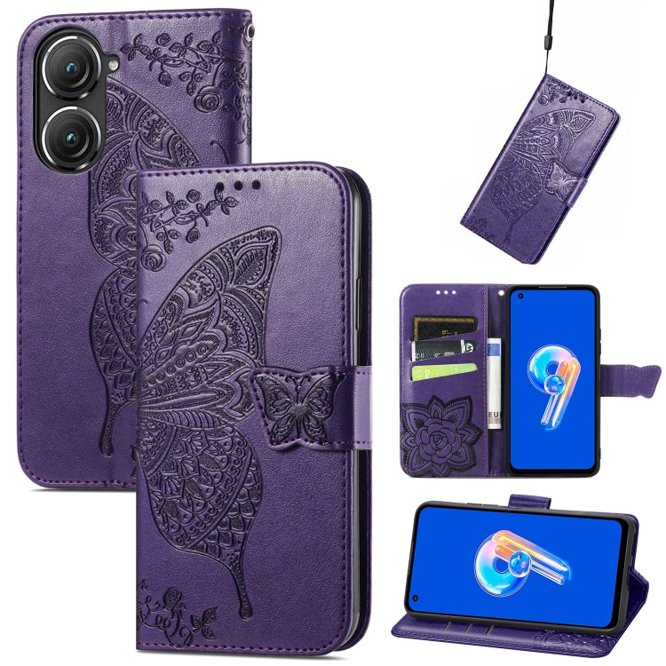 Estuche para Asus Zenfone 9 Butterfly Love Flower de Cuero en Relieve (Púrpura)