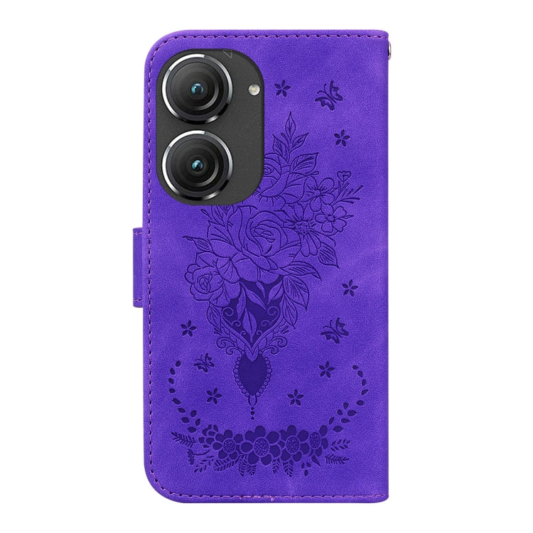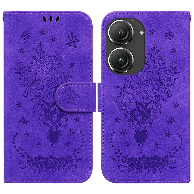 Estuche para Asus Zenfone 9 Butterfly Rose de Cuero en Relieve (Púrpura)